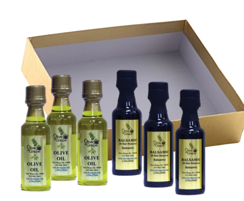 Contains: Greek Seasoning Olive Oil, Pear Balsamic, Herbes de Provence Olive Oil, Cranberry Balsamic, Basil Olive Oil and Red Apple Balsamic.